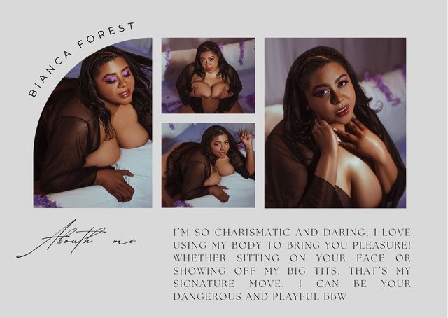 Ya sea sentada en tu cara o presumiendo mis grandes pechos, ese es mi movimiento característico. Para que pueda ser tu BBW peligrosa y juguetona.
